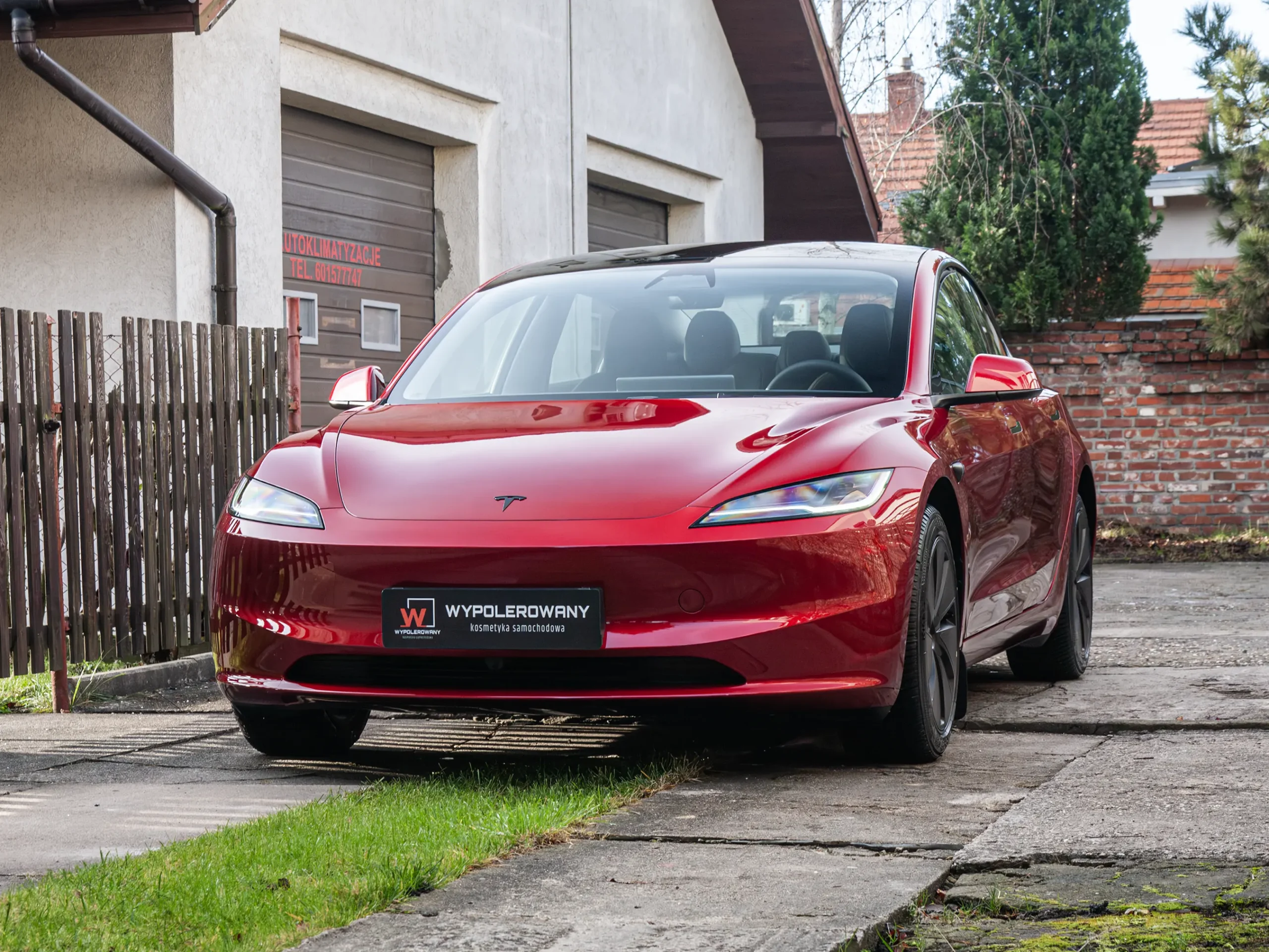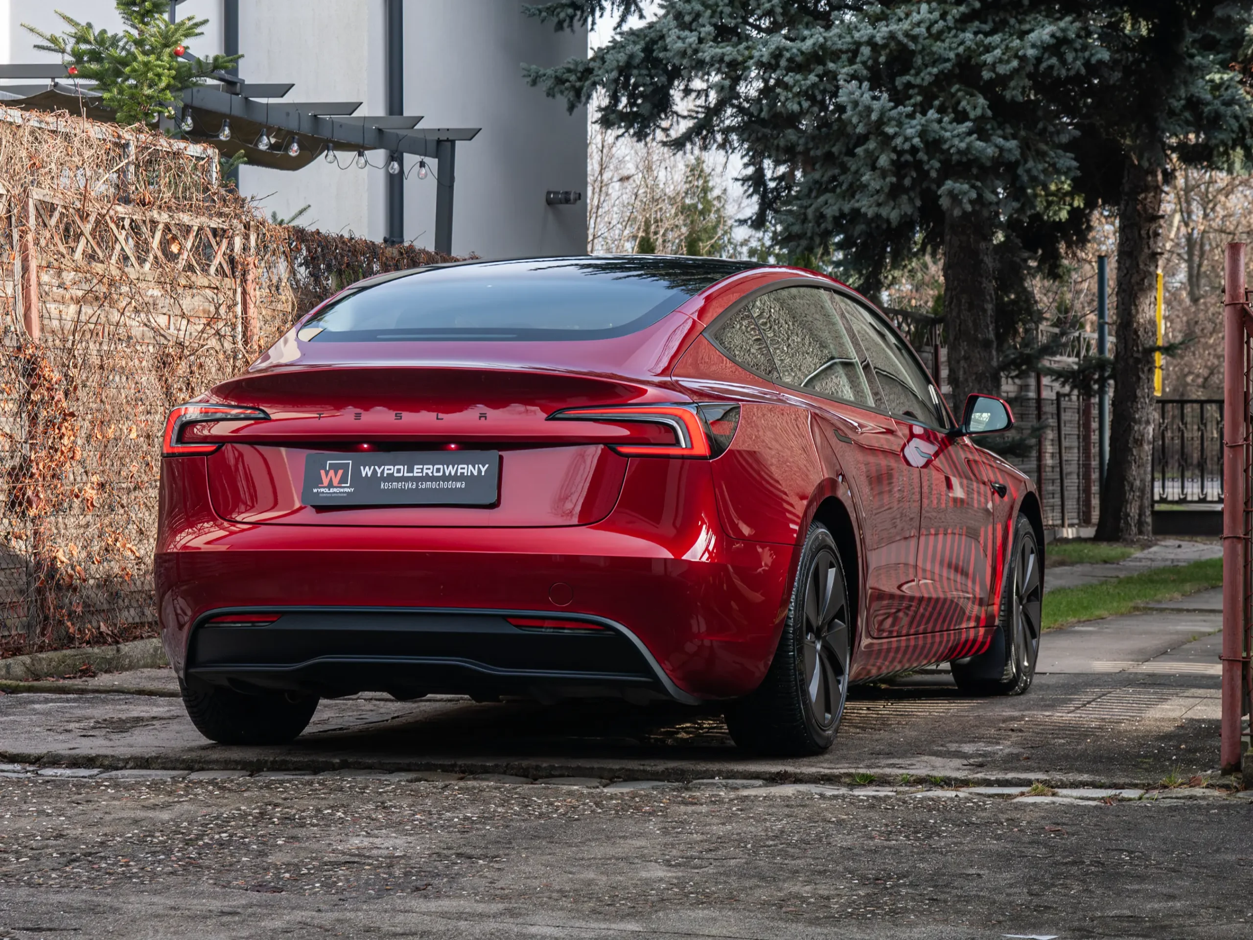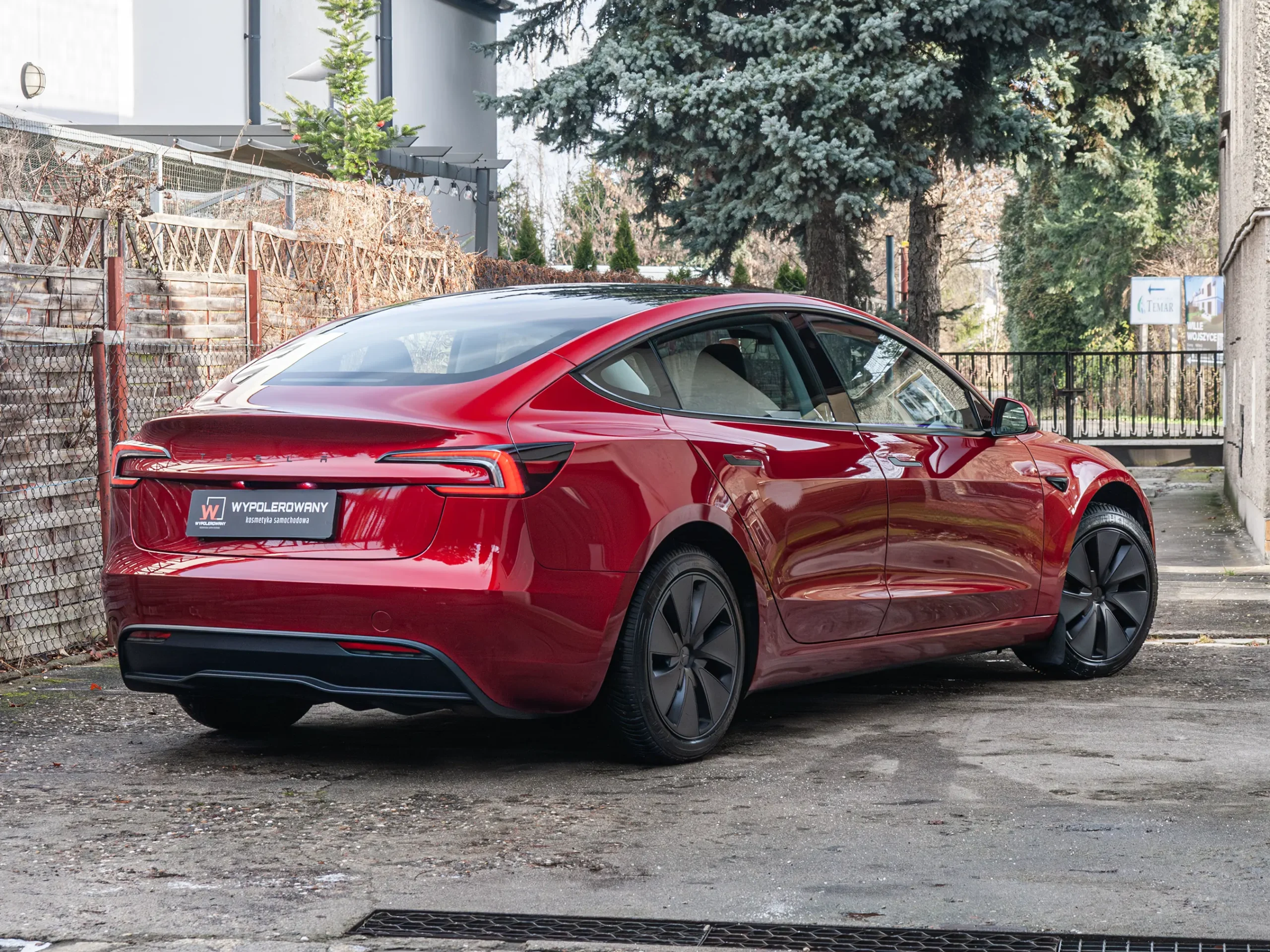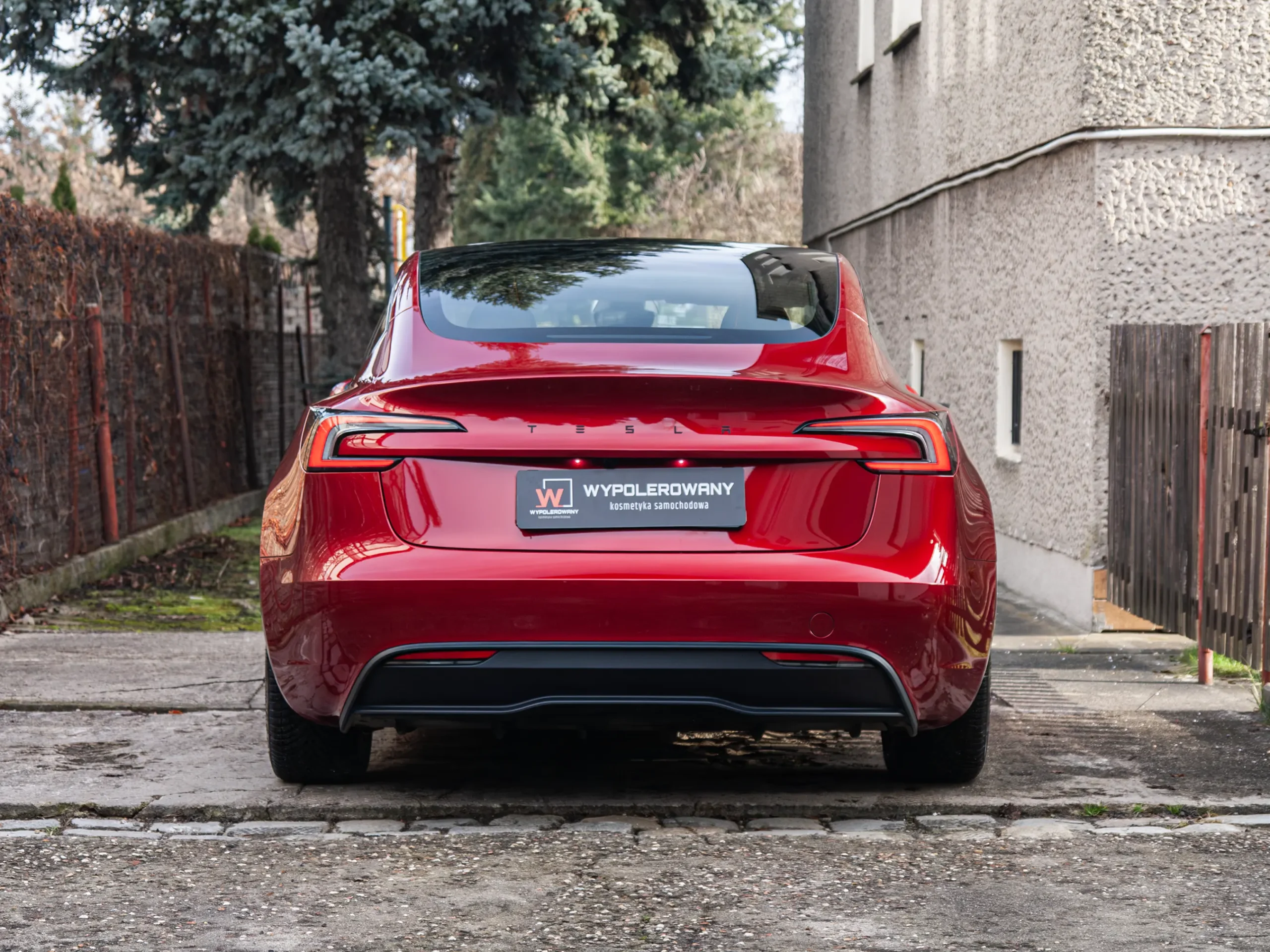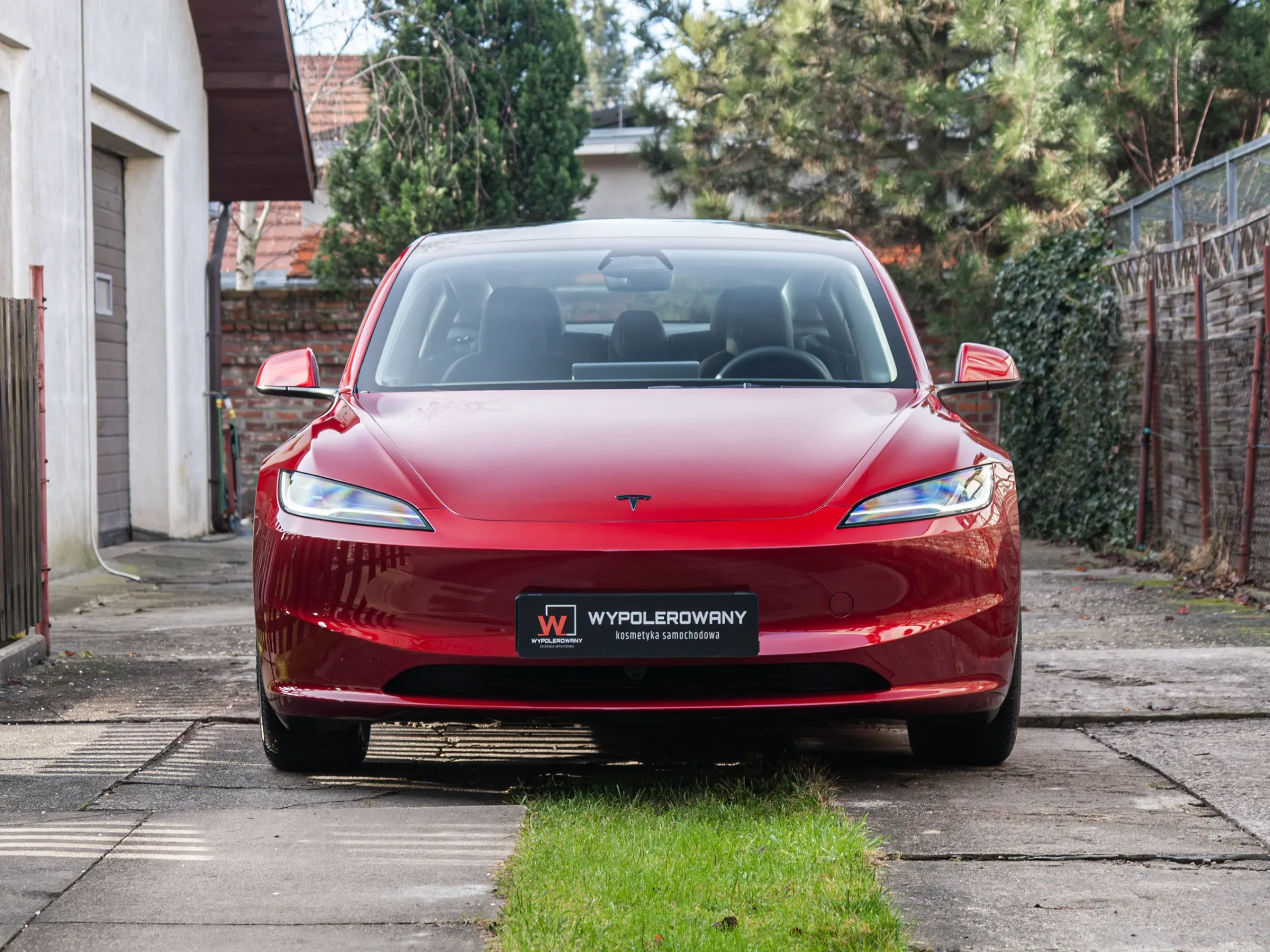 Przód auta okleiłem bezbarwną folią PPF o grubości 200 mikronów. To mocno zmniejsza ryzyko uszkodzeń od drobnych kamieni i brudu drogowego. Pozostałe elementy nadwozia pokryłem trwałą powłoką ceramiczno-grafenową, aby podbić kolor i szklisty połysk. Dzięki temu mycie Tesli Model 3 jest szybsze i łatwiejsze na co dzień.